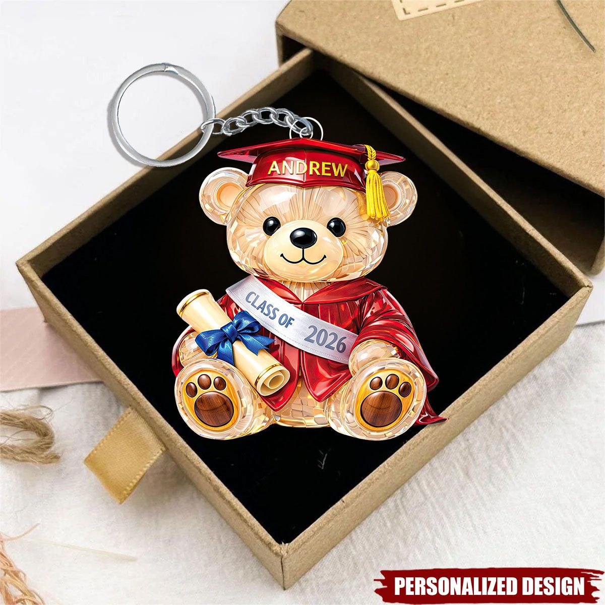 Llavero de acrílico personalizado de la graduación del oso 2026