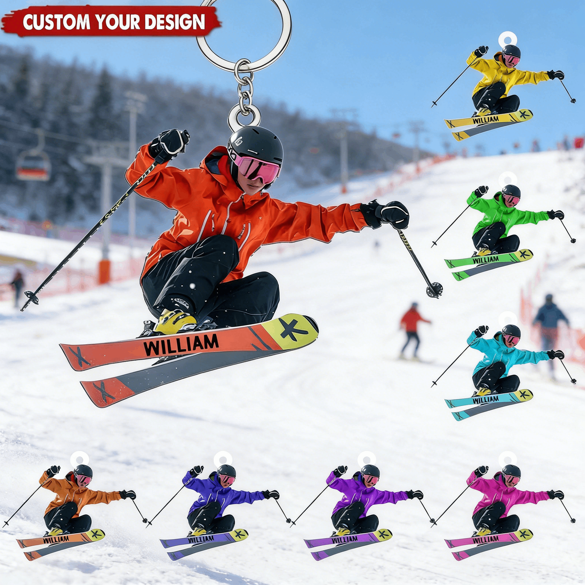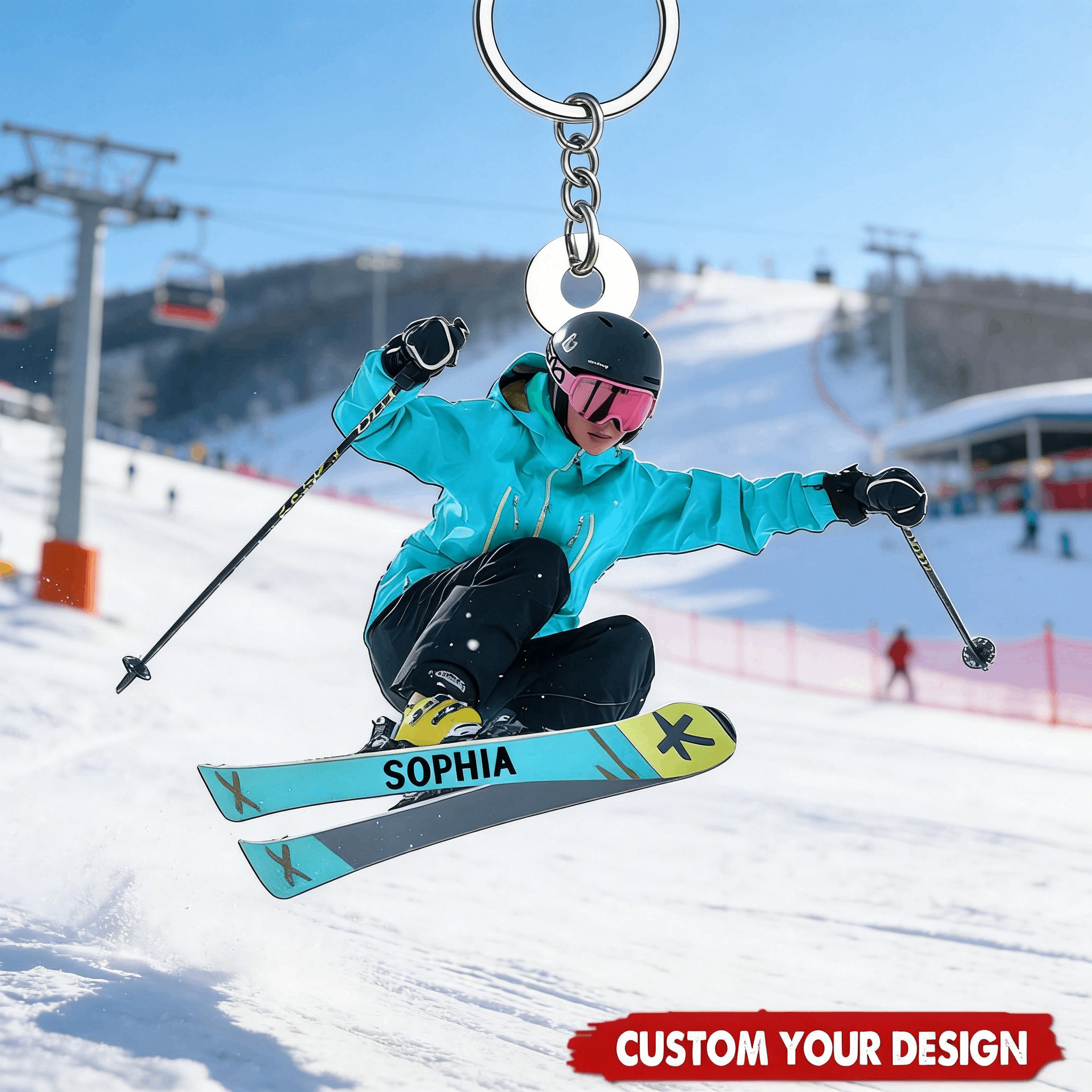 No es solo un deporte. Es su forma de sentir la libertad, de desafiar la gravedad, de encontrar paz en la cima y alegría en cada descenso. Este llavero celebra a la esquiadora que lleva la montaña en el corazón, que cuenta los días hasta la próxima nevada y que sabe que las mejores historias se escriben en la nieve.