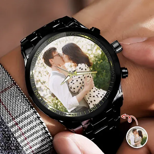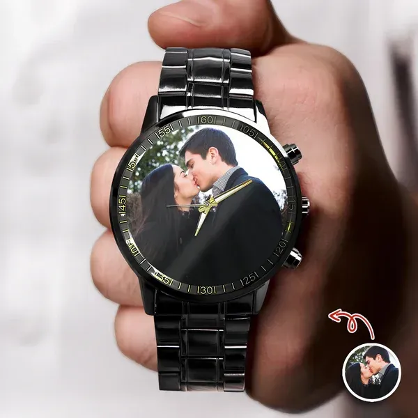 Regalo de encargo del reloj de la muñeca de los hombres de la foto de los pares para el novio, marido