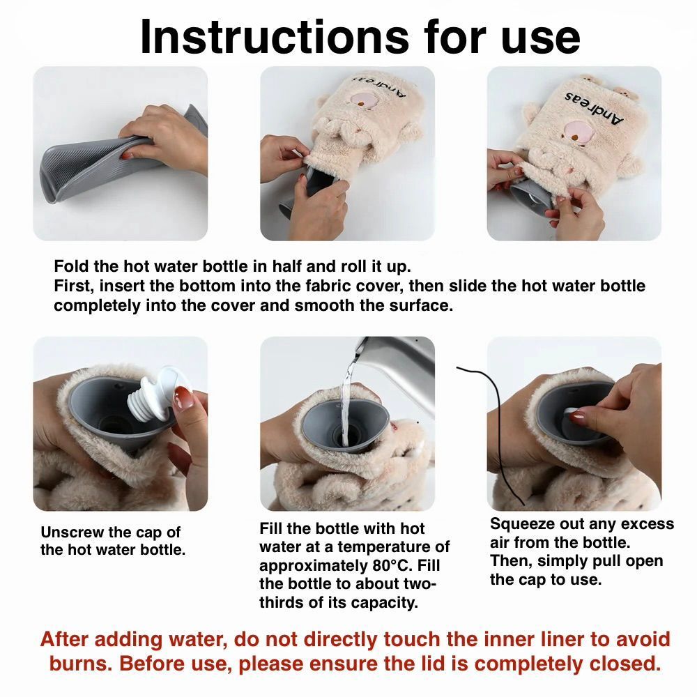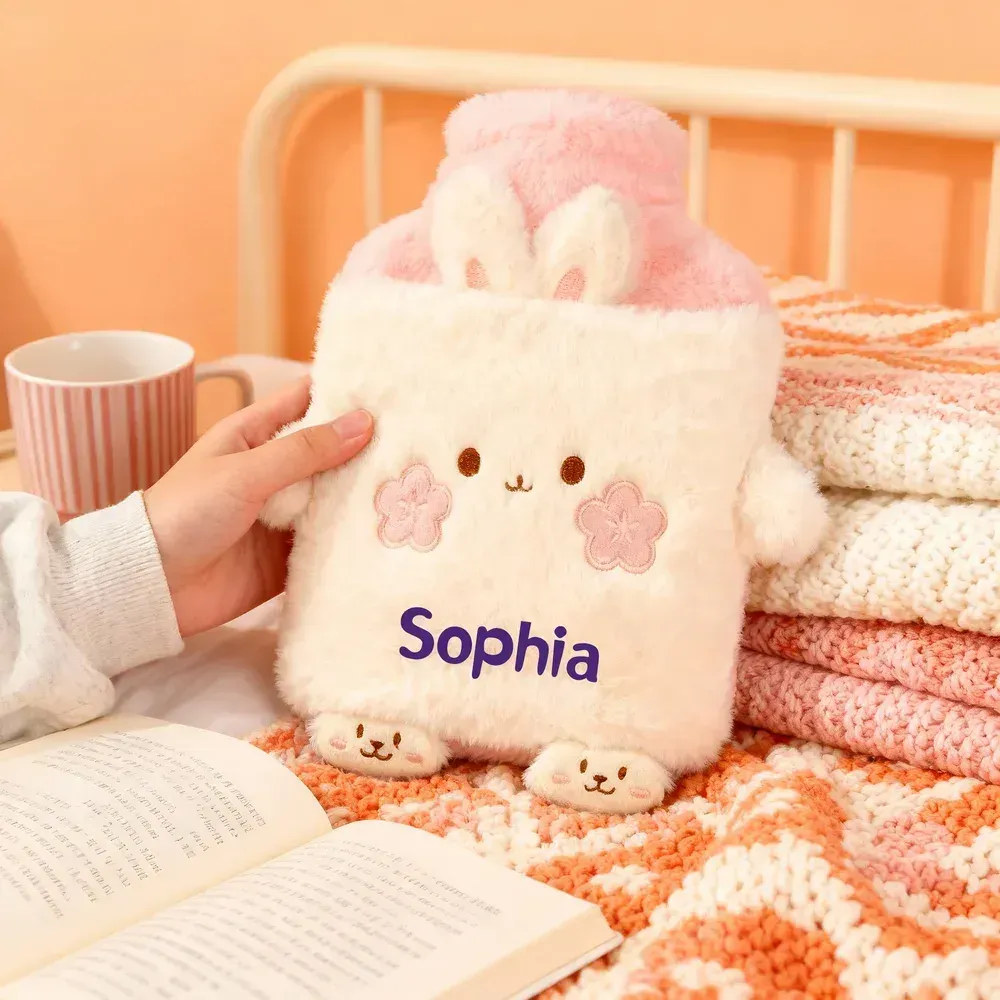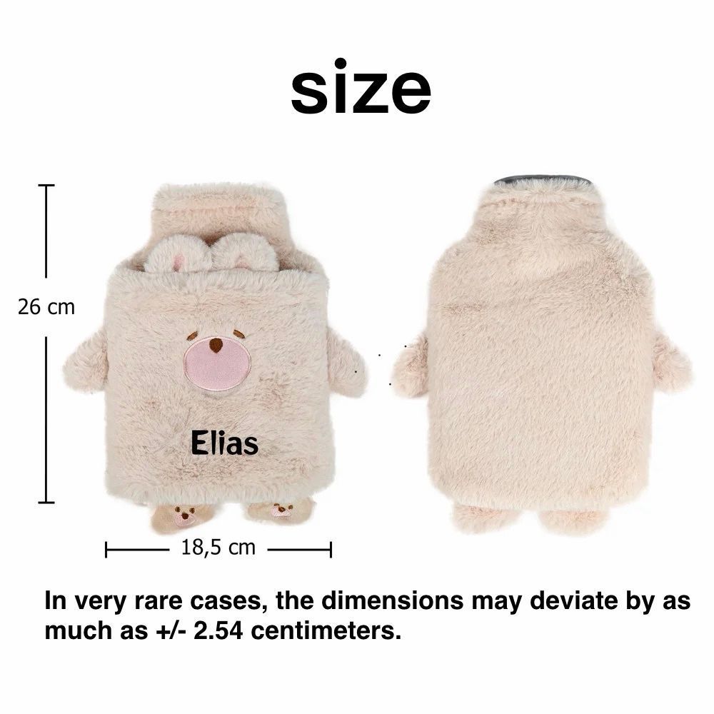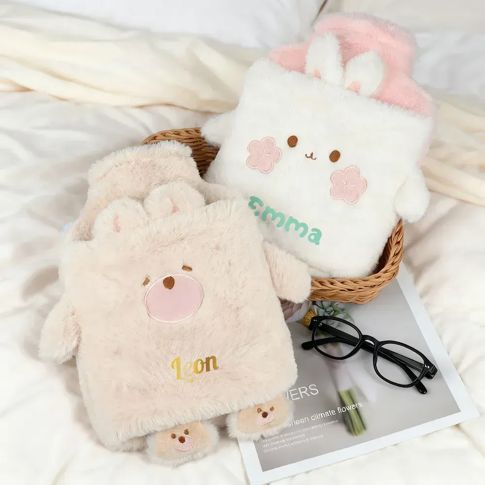Botella de agua caliente de felpa de 1 litro personalizada con adorables diseños de animales y la opción de imprimir su nombre en ella, perfecta para el hogar, viajes, cumpleaños, invierno, Navidad o como regalo para niños y amigos.